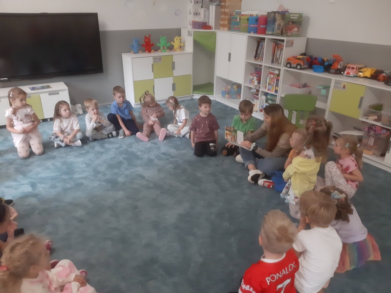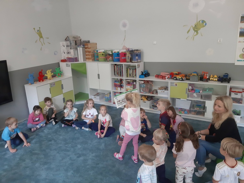 We wrześniu w naszej grupie naprawdę dużo się działo! Po wakacyjnej przerwie dzieci wróciły pełne energii, radości i ciekawości świata, gotowe na nowe przygody i wspólne odkrycia. Wybraliśmy się na wycieczkę do Portu Lotniczego im. Władysława Reymonta w Łodzi, gdzie mogliśmy z bliska zobaczyć, jak wygląda praca na lotnisku i jak startują samoloty. Świętowaliśmy również Dzień Kropki – pełen kreatywnych zabaw, kolorów i pomysłów. Nie zabrakło też wyjątkowych gości – odwiedziły nas mamy naszych przedszkolaków, które z radością czytały nam ulubione książeczki. To był miesiąc pełen wrażeń, nauki i uśmiechu!